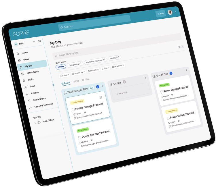 One such software is SOPHIE AI—a purpose-built system for dentistry SOPs, training, and operational execution.